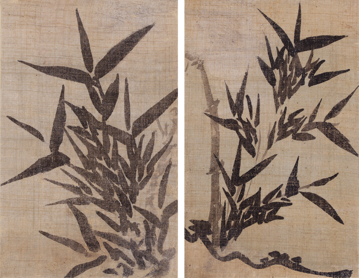 이 작품은 모시에 그린 묵죽도 두 폭으로, 막 자라는 어린 대나무의 풍성한 잎을 농묵으로 표현했다.